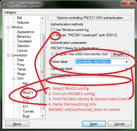 PKCS#11 Libraries: PuTTY CAC was tested with the Litronics NetSign CAC middleware, and with the ActivIdentity ActivClient CAC middleware. Feedback is requested by the author on whether it works or not with other middleware.